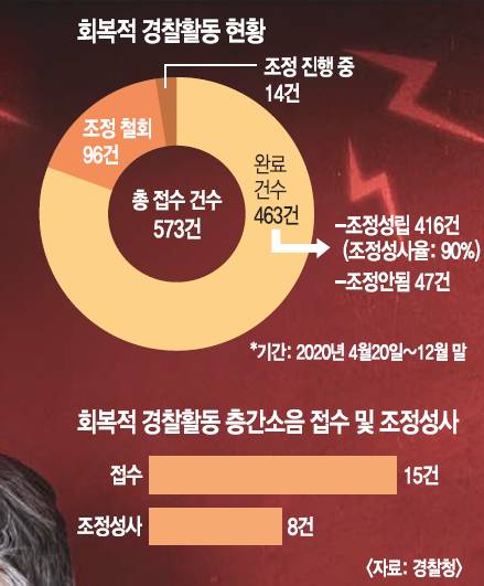 이미 지난해 하반기부터 전국 142개 경찰서에서 실시 중인 회복적 경찰활동은 층간소음을 포함해 학교폭력, 소년사건, 주차 시비 등 일상에서 발생할 수 있는 다양한 갈등을 해결하는 데 성과를 내고 있다. 지난해 접수된 573건 중 463건이 완료됐는데, 이 중 416건에서 조정이 성립돼 조정성사율이 90%에 달한다. 오는 2월부터는 전국 178개 경찰서에서 확대 운영될 예정이다.