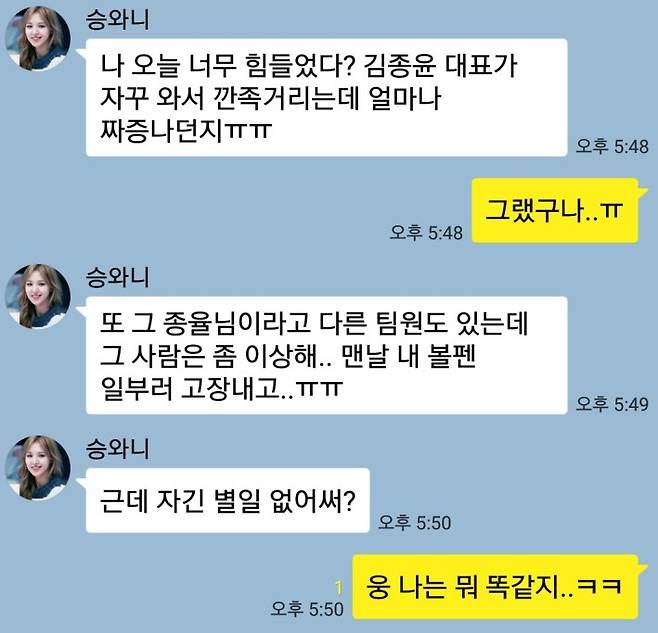 오늘 하루 어땠는지도 좀 말해줘ㅠㅠ.”