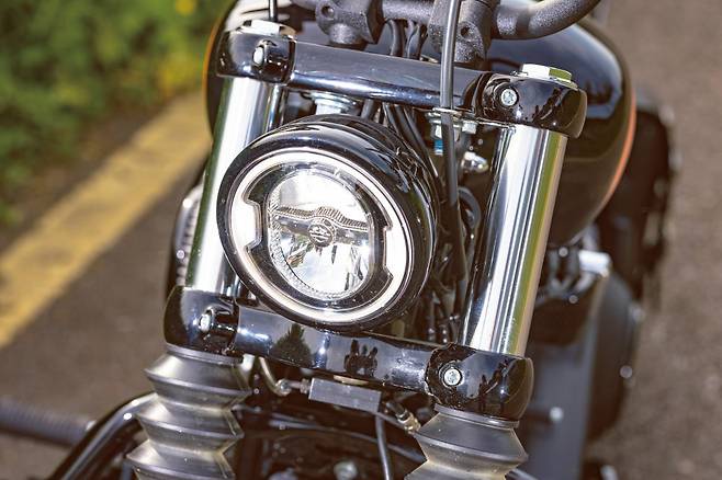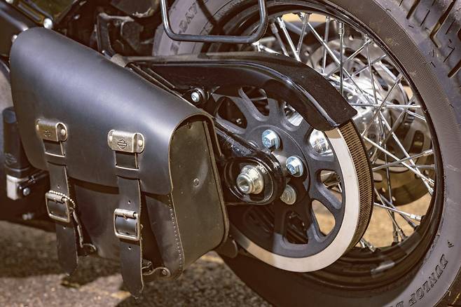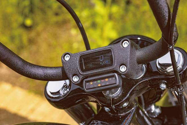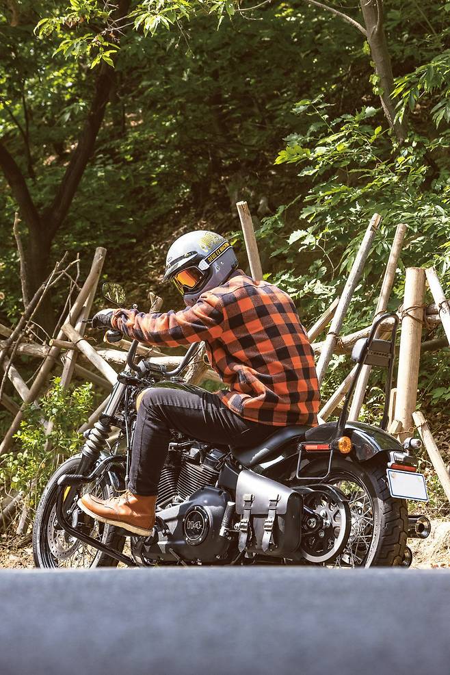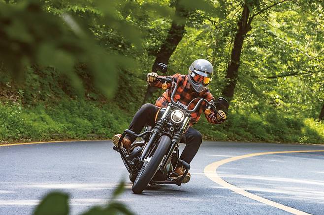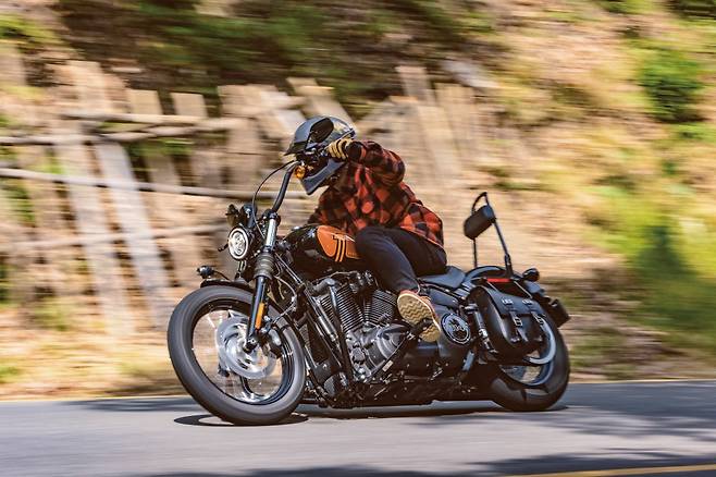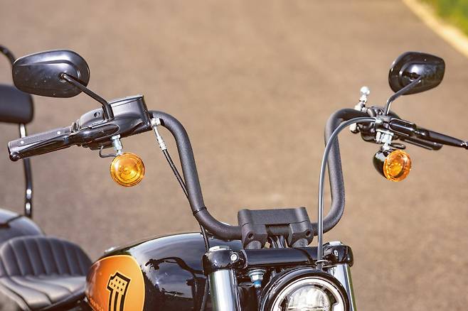 1단 기어를 넣을 때 ‘텅’ 소리를 내며 맞아 들어가는 미션에서 할리 특유의 투박함을 느낀다. 레버에 힘을 빼고 클러치를 연결하는 순간 묵직했던 차체가 너무나 가볍게 훅 튀어 나간다. 기분 좋은 토크감을 선사하는 엔진은 155Nm의 압도적인 최대토크와 언제든 원하는 만큼의 토크를 꺼내 쓸 수 있는 넓은 토크영역으로 바이크가 움직이는 내내 넘치는 여유를 만들어준다. 순정 머플러는 아이들링에서는 아주 조용하게 소리를 잡아주고 달릴 때는 적당한 배기음을 통해 엔진의 존재감을 라이더에게 전달한다.