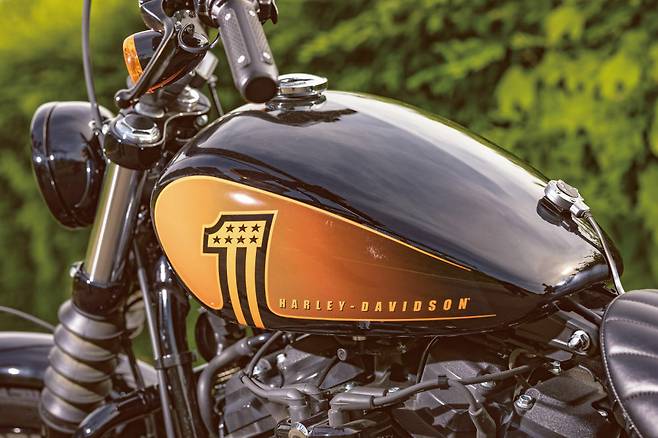 2021 스트리트밥 114는 모든 컬러의 연료탱크에 #1 그래픽을 더했다. 할리데이비슨의 #1 로고는 1969년 AMA 그랜드 내셔널 챔피언십 우승을 기념하기 위해 처음 만들어진 것으로 이후 아메리카 #1브랜드의 자부심을 담아서 꾸준히 사용해오고 있는 로고다. 특유의 레트로한 분위기에 스포티한 느낌까지 더해져 새로운 느낌이다. 비비드 블랙을 선택하면 오렌지색의 그래픽과 올블랙으로 칠해진 차체와 선명하게 대비된다.