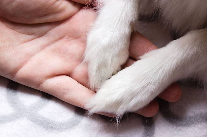 평소 밥 주기 전에 '손!'하고 밥을 주셨다면, 이러한 행동을 할 수도 있다고 해요!