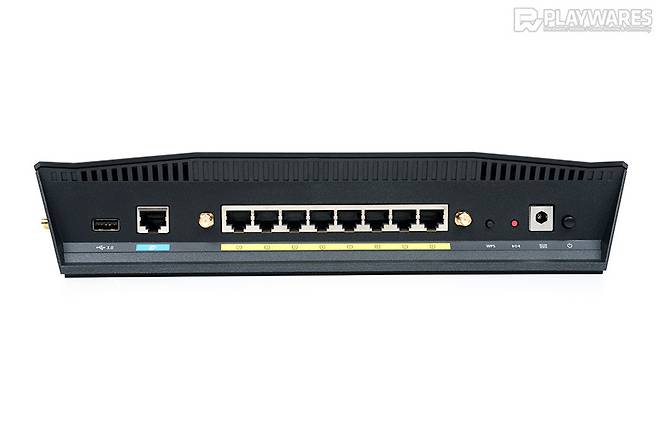 그리고 유선 및 외부 인터페이스 측면에서도 일반 공유기보다 더욱 안정적이고 우수한 환경을 구축할 수 있습니다. 우선 이더넷 포트는 10/100/1000Gigabits BaseT 규격의 RJ-45 포트가 사용되고 있으며, 1개의 WAN 포트와 8개의 LAN 포트로 구성되어 있습니다. 여기서 LAN 포트당 최대 1Gbps까지의 대역폭 할당이 이뤄지고 있고, 링크 어그리게이션(802.3ad)을 통해 제한된 환경에서의 다중 LAN 연결을 통한 대역폭 확대를 적용하는 것도 가능합니다. 기가비트 이더넷을 연결한 본 테스트 환경에서는 일반 제품군보다 근소하게 손실이 적은 전송 속도를 보여주었으며, 이 부분에 한해서는 여타의 유선랜 공유기와 크게 다르지 않은 활용도를 갖추고 있습니다. 하지만 802.11 AX 규격을 활용하기 위해 10Gbps 대역폭을 갖춘 기가 인터넷을 활용한다면 유선랜의 기능 역시 크게 강화됩니다. 현재의 1기가 인터넷을 사용했을 때 모든 케이블에 대역을 할당하면, 전반적인 속도가 감소하게 되지만 10기가 인터넷을 활용하면 총 8개의 LAN 포트 모두에 대역폭 할당을 하더라도 여유가 있기 때문에 모든 포트에서 대역폭 분배에 따른 속도 감소 없이 1Gbps의 안정적인 유선랜 환경을 마련할 수 있습니다.