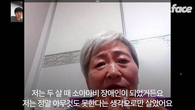 박명애씨가 세상 밖에 나온 건 얼마되지 않은 일입니다. 그는 마흔일곱살 처음 세상 밖에 나와 학교를 다니기 시작했습니다. 활동보조서비스를 통해 바람도 맞고 빗소리도 들으며 휠체어를 타고 다닐 수 있게 되었지요.