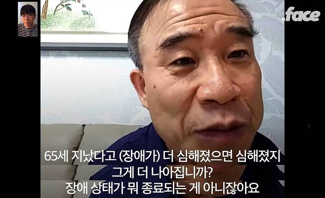 온종일 활동보조인과 함께하면서 일상생활을 꾸려나가던 중증장애인도 65세가 되면 무조건 '장기요양이 필요한 노인'으로 분류되어, '하루 최대 4시간'으로 제한되는 방문 요양 서비스만을 받게 되는 것이죠. 기존에 받을 수 있었던 활동지원 시간이 대폭 줄어들게 되는 것입니다.