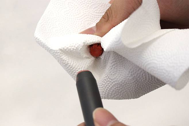 용기를 힘껏 짜서 내용물을 다 빼내자.