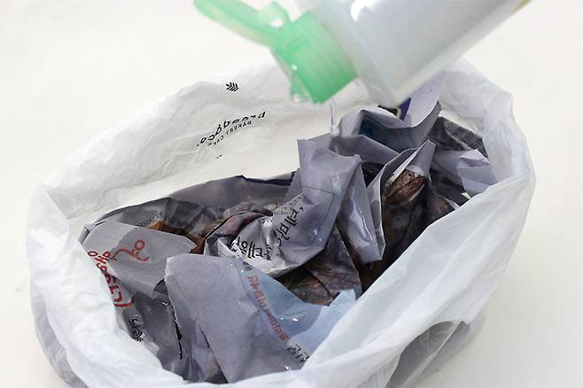 휴지에 싸서 일반 쓰레기에 보내면 끝!