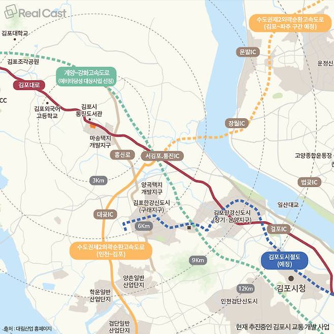 마송지구와 인접한 대곶면 거물대리 일대에 추진 중인 평화경제자유구역 개발도 본궤도에 오르면서 새로운 성장동력으로 주목받고 있습니다. 현재 난개발 지역인 대곶면 일대가 개발이 된다면 정부와 외국기업의 투자를 받아 경제특구 지역으로 성장하게 됩니다. 그리고 현재는 한강신도시까지 운행 예정인 김포도시철도의 노선이 평화경제자유구역을 지나 마송지구까지 올 가능성도 전혀 없지 않기 때문이지요.