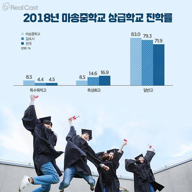 마지막은 교육에 대한 것이었습니다. 특히 마송중학교를 주목해 볼 만합니다. 해를 거듭할 수록 상급학교 진학률이 높다는 것입니다. 실제 졸업생의 진로 현황을 살펴본 결과, 특목고 진학률이 8.5%로 김포시 평균(4.4%)이나 전국 평균(4.5%)보다 높게 나타났습니다. 거기에 마송지구는 읍 단위인 만큼 농어촌 특별전형과 고른기회전형이 가능한 곳으로 수시를 통한 대학진학이 가능한 곳이라 교육열 높은 부모님들의 주목을 받고 있습니다.