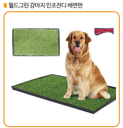 인조 잔디로 되어 있어서 바깥에서 배변하는 기분을 느낄 수 있는 배변판이에요. 실외 배변하는 강아지의 배변 훈련에도 좋아요.