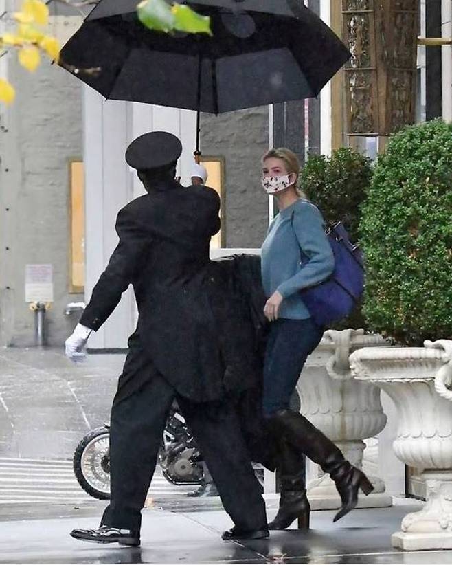 ↑사진 = 지난 13일 이방카 트럼프가 뉴욕 맨해튼의 아파트를 둘러보고 가는 모습이 포착됐다.