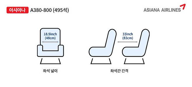 - 좌석 간 간격 : 33inch (83cm)