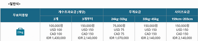 23kg 무료 위탁수화물 포함