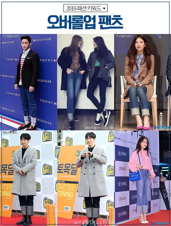 청바지 밑단을 넓게 접어 입는 오버롤업 팬츠 스타일을 두 번째 키워드로 뽑아 봤어요. 다른 말로는 제곱롤업 팬츠라고도 불리는 이 패션은 자칫 잘못 하면 다리가 짧아 보이는 경우가 발생하는데요. 이를 방지하기 위해서 상의를 하의 안에 넣어 입는 게 좋아요.