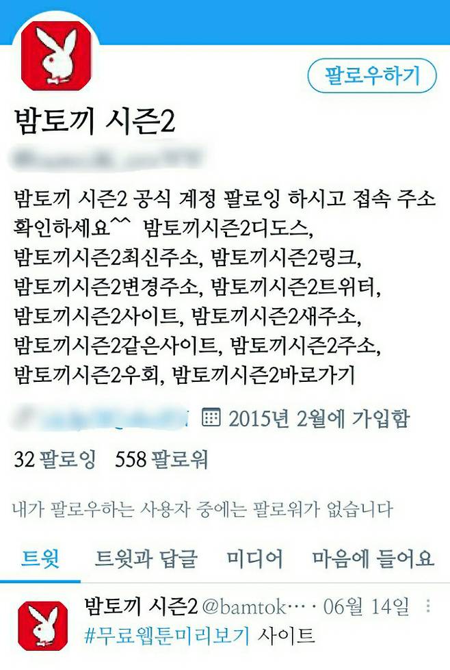 불법 사이트를 국내에서 접속할 수 없도록 방송통신심의위원회가 차단하고 있지만 우후죽순격으로 또다른 사이트가 만들어지기 일쑤다. 불법 사이트 운영자들은 사회관계망서비스(SNS) 계정을 운영하면서 한 사이트가 차단되면 새로운 사이트 링크를 올리는 식으로 기존 이용자에게 홍보한다. ‘밤토끼’ 사이트를 차단하면 ‘뉴토끼’나 ‘밤토끼 시즌2’를 만들어 SNS에 홍보하는 식이다. 그나마 단속 권한이 있는 방송통신심위원회는 방심위원들의 임기가 종료된 지난 1월 이후 5개월째 구성되지 않고 있다.