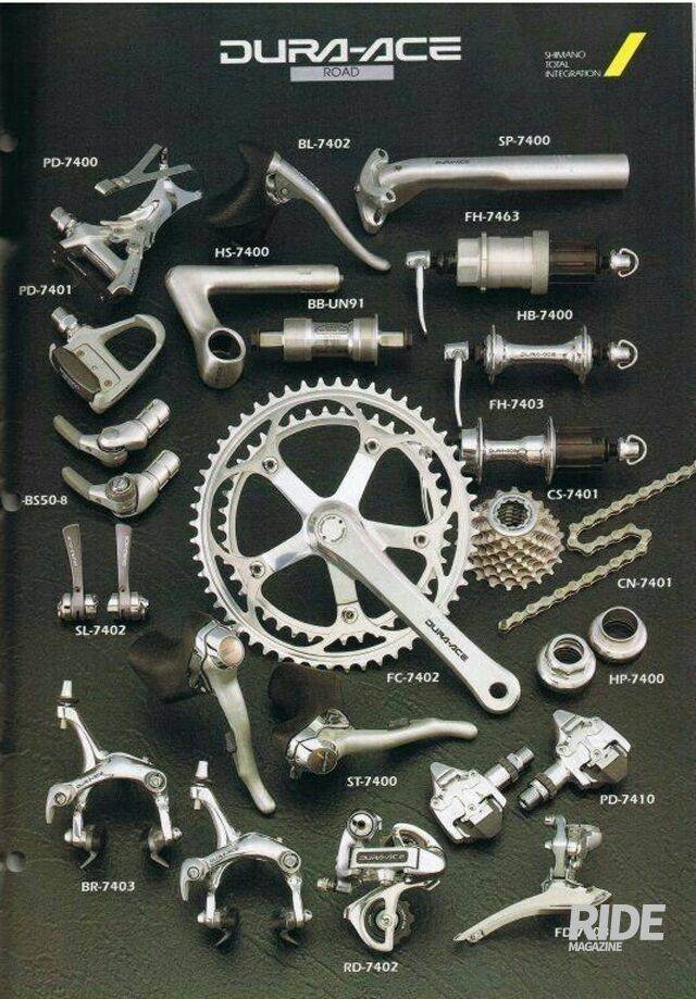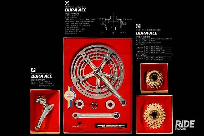 시마노의 로드바이크 구동계 그룹세트를 논하려면 듀라에이스의 역사를 먼저 살펴볼 필요가 있다. 듀라에이스는 듀라(Dura)와 에이스(Ace)의 합성어다. 듀라는 가볍고 강한 성질로 항공기 재료의 주류를 차지하고 있는 알루미늄 합금인 두랄루민(Duralumin)과 내구성 또는 내구력이라고 번역되는 듀라빌리티(Durabillity)의 2가지 의미를 함축하고 있다. 에이스는 최고를 의미한다. 1973년 1세대 듀라에이스는 5단과 6단의 드라이브 트레인으로 출시됐다. 프로 모델은 5/6단의 옵션이 있었고, 투어 모델은 5단이었다. 시마노는 1977년 1세대 듀라에이스와 비교해 체인링 디자인에 변화를 준 2세대 듀라에이스 7100을 발표했고, 1978년 그 당시 혁신적이었던 6단 프리허브가 적용된 듀라에이스 EX 7200을 발표했다.