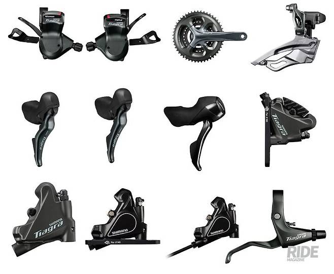 티아그라(Tiagra)는 거인이란 뜻의 타이탄(Titan)과 ‘통합시키다’라는 의미의 인티그레이트(Integrate)의 합성어이다. 2001년 9단 드라이브 트레인의 4400 시리즈로 처음 출시됐던 티아그라는 2007년 9단 4500 시리즈의 출시에 이어, 2012년 10단으로 업그레이드된 4600 시리즈가 출시됐다. 그리고 2015년 듀라에이스 및 울테그라 등 상위 그룹세트에서 선보인 기술과 디자인을 계승한 10단 티아그라 4700 시리즈가 출시됐다.