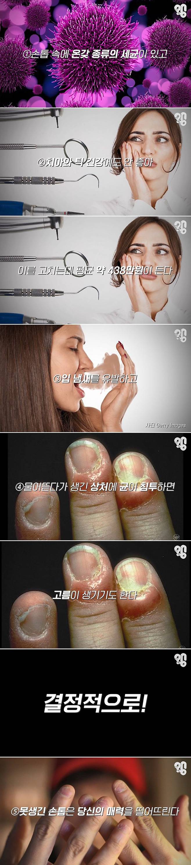 인디펜던트는 “이 못생긴 손톱이 매력을 떨어뜨린다는 건 이미 당신도 알고 있는 사실”이라면서 “무의식적으로 반복되는 습관을 고치고 싶다면 장갑 등으로 손톱을 감싸고 있는 것도 한 방법”이라고 설명했다.