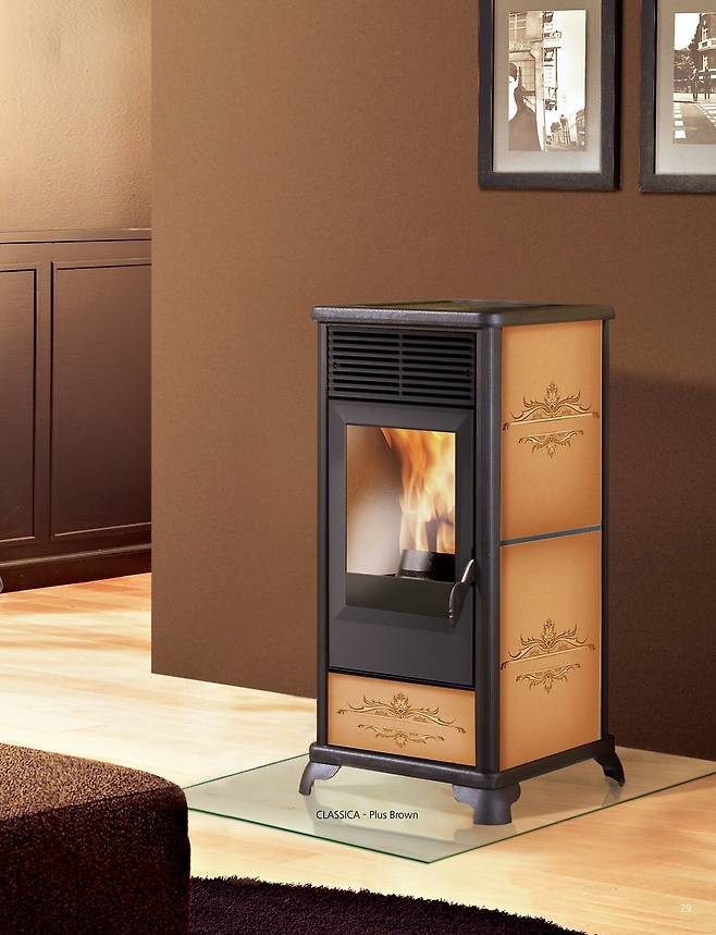 펠릿난로는 목재펠릿을 원료로 하는 벽난로다. 목재펠릿은 산림작업 부산물을 파쇄, 건조, 압축해 만든 목재원료다. 최대장점은 95% 연소율로 높은 열효율을 보인다는 점이다. 단시간에 공간 전체를 데우는 효과가 좋다. 또한, 목재펠릿은 대기 중으로 온실가스와 유해가스를 배출하지 않아 주택 내에 있는 벽난로 원료로 사용하기 적합하다. 산림청 자료에 따르면 펠릿이 원유 1톤 대체 시 CO2 3.04톤, 유연탄 1톤 대체 시 CO2 2.1톤 배출을 줄이는 효과가 있다. 게다가 원료의 길이는 0.6~4㎝ 작은 크기로 무게도 가벼워 많은 양을 보관할 수 있고 이동할 때 용이하다. 가격은 100만~500만 원 정도다.