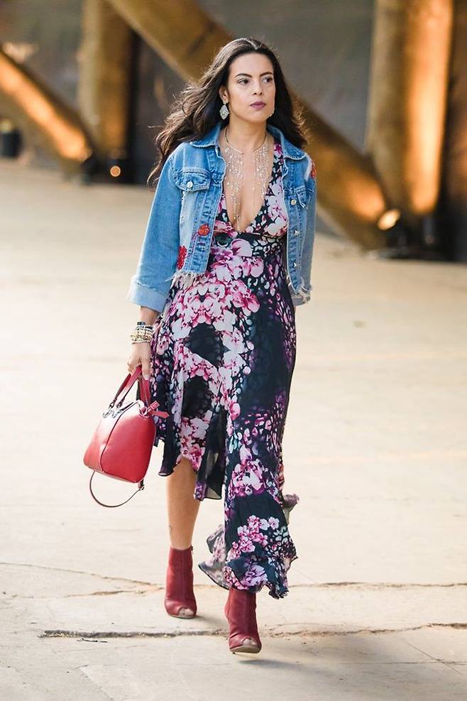 13. 가슴 골이 깊이 파인 맥시 + 해진 진 재킷 + 레드 힐