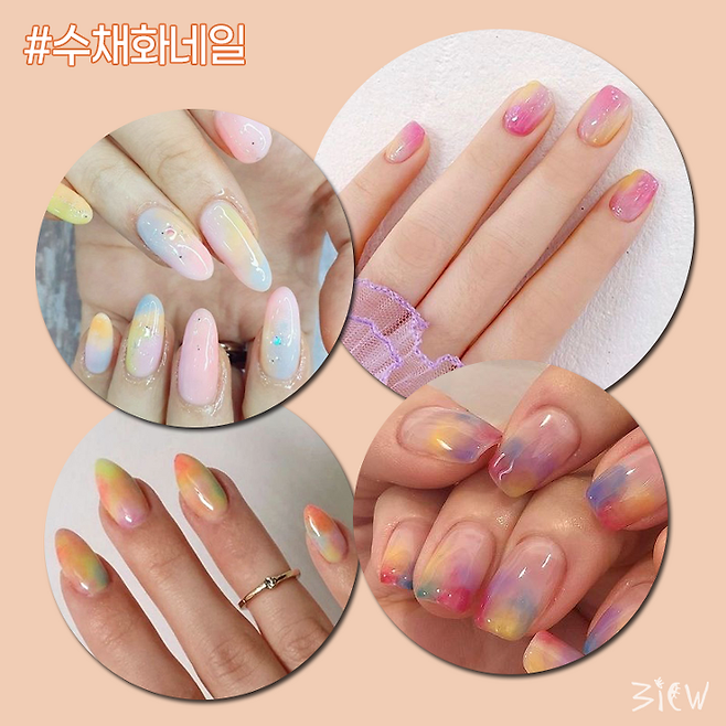 수채화 네일이 참 예쁘더라고요!