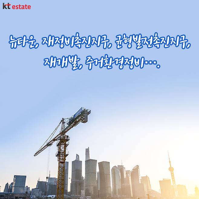 뉴타운, 재정비촉진지구, 균형발전촉진지구 모두 낙후된 도시지역을 새로 정비하고 주택이나 기반시설을 새롭게 세우는 것을 말합니다. 이외에도 개발하면 떠올리는 재개발사업(구역)도 있는데요. 사업의 규모나 포괄적인 의미로 볼 때 재개발사업은 뉴타운, 재정비촉진지구에 포함됩니다.