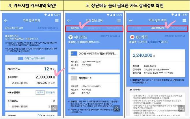 [3. "내카드 한눈에"로 조회 가능한 신용카드 목록]