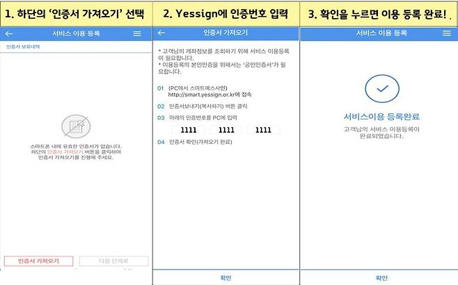 2. 서비스 이용 등록(인증서 가져오기) 하기!