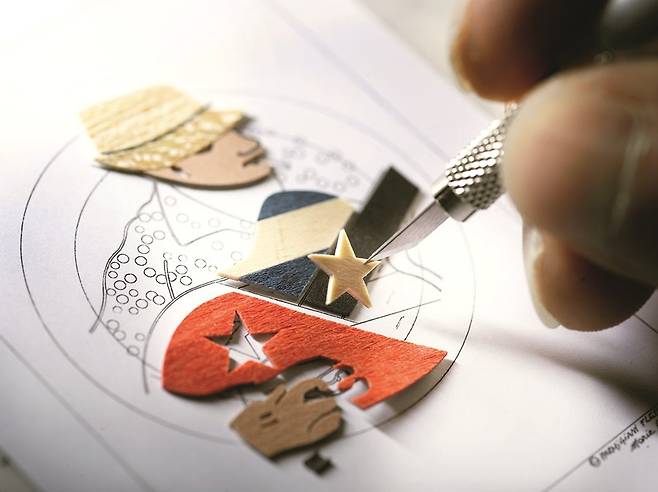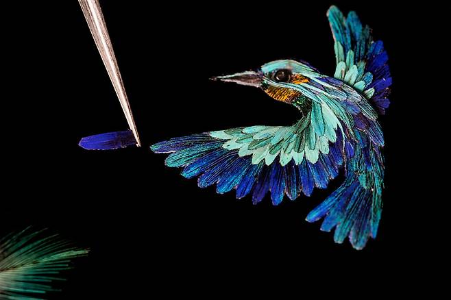 - 꽃잎을 상감세공해 새의 모습으로 형상화한 발롱 블루 드 까르띠에 플로럴 마케트리