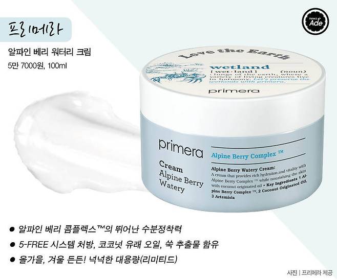 프리메라 알파인 베리 워터리 크림은 출시 이래 꾸준한 인기를 자랑한다. 피부 타입 가리지 않고 인생템으로 꼽히는 크림 중 하나! 최근 대용량 리미티드를 출시해 가성비까지 겟하고 나섰다.
