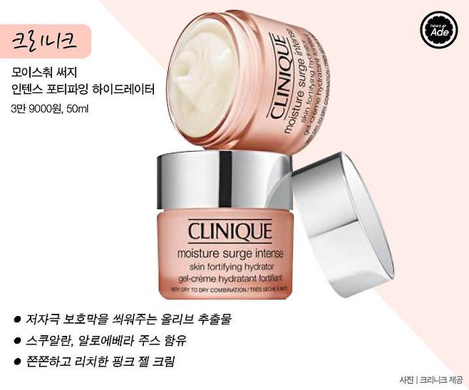 크리니크에서는 핑크 수분크림 '모이스춰 써지'가 단연 베스트셀러였다. 여기에 에센스 함량을 높인 모이스춰 써지-인텐스 스킨 포티파잉 하이드레이터가 지난 2011년 출시된 이래 꾸준한 인기를 얻고 있다.