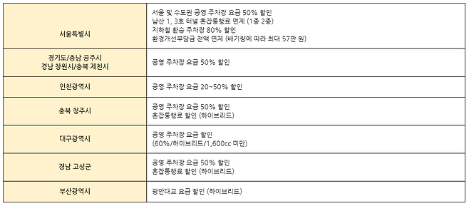 *일부 지자체 시설 및 주차장에 따라 다를 수 있음