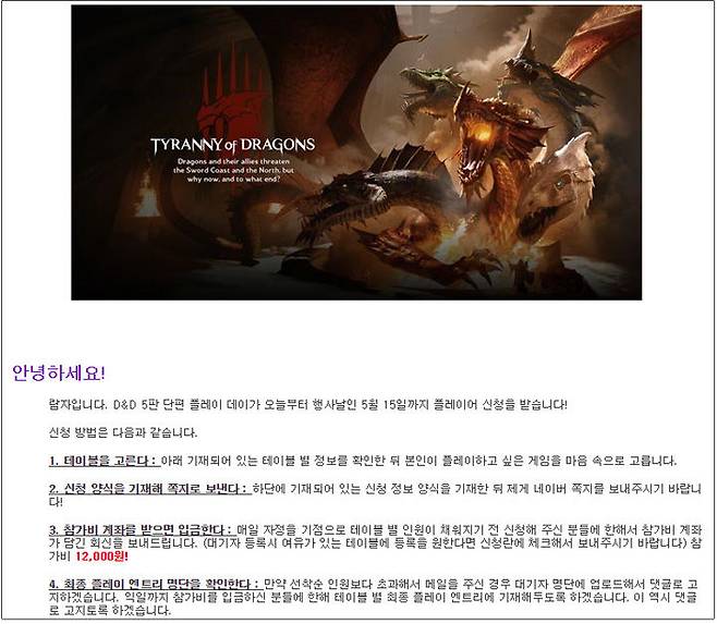 권 매니저의 기억에 따르면, 2014년경 <D&D> 5판이 막 나왔을 때 수도권에서 5판을 즐기는 팀은 서울에 하나, 수원에 하나 두 팀에 불과했습니다. 한국에서 사람이 가장 많고 서브컬처 인프라도 좋은 수도권 상황이 이렇다면 말 다했죠.