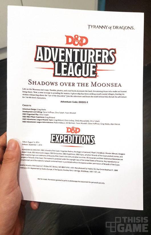 ※ 어드벤처러스 리그: WotC가 주최하는 TRPG 행사. 대부분의 TRPG가 정해진 팀원들과 함께 오랜 시간 시나리오를 진행한다면, 어드벤처러스 리그는 마치 MMORPG에서 인스턴스 던전을 랜덤 매칭하듯 임의의 유저들과 함께 즉석에서 팀을 짜 단기 시나리오를 즐기는 방식으로 운영된다.