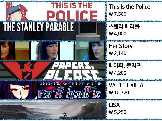 독특하고 신선한 게임을 위해서라면, 게임의 가격은 신경 쓰지 않는 분을 위한 리스트입니다. 평소에 가격이 비쌌거나, 사고 싶은 욕구가 없었던 분이라면. 이번 스팀 세일을 기회로, 위 리스트의 게임들에 관심을 가져보는 것은 어떨까요. 모두 독특하고 신선한 게임이며. 리스트에 올라온 게임 대부분은 수상 경력이 있는 게임이기도 합니다.