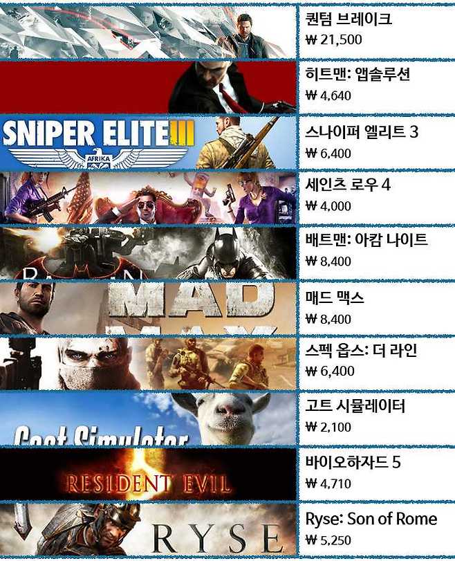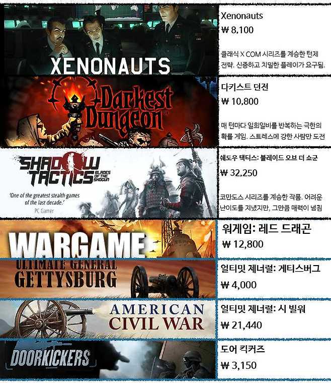 가격에 비해 게임성이 만족스럽지 못했거나, 해보고는 싶은데 가격이 부담스러웠던 게임. 이 가격대라면 부담 없이 도전해볼 수 있습니다. 호불호가 갈리는 게임이지만, 한 번쯤은 해보고 싶었던 게임들의 리스트입니다.