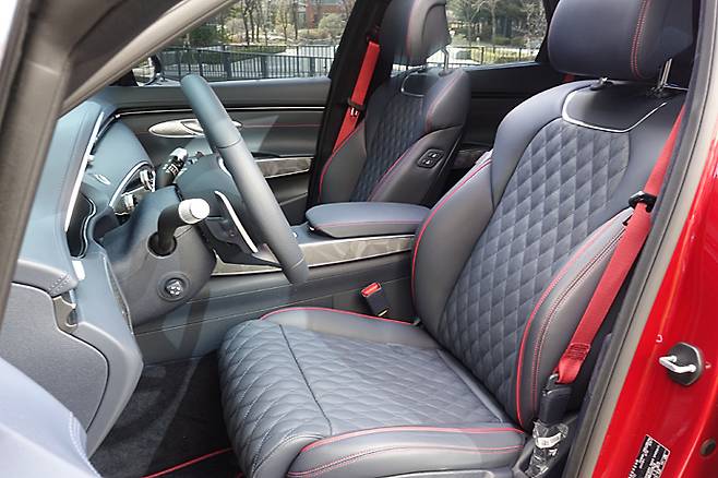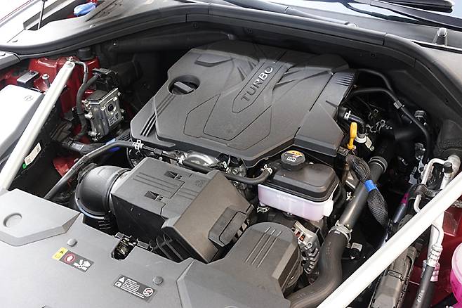 엔진은 3.5 터보와 2.5 터보, 2.2 디젤 등 세 가지. 과거에는 3.5ℓ의 경우 대부분 미국 시장용으로 인식됐는데 이제는 내수 시장에도 자연스럽게 녹아들어 있다. 시승차는 2.5 터보로 2,497cc 직렬 4기통 DOHC 직분사 터보차저 가솔린으로 최대출력 304ps/5,800rpm, 최대토크 43.0kgm/1,650~4,000rpm을 발휘한다. 출력이 쏘나타 N라인에서는 290ps인데 비해 높다.