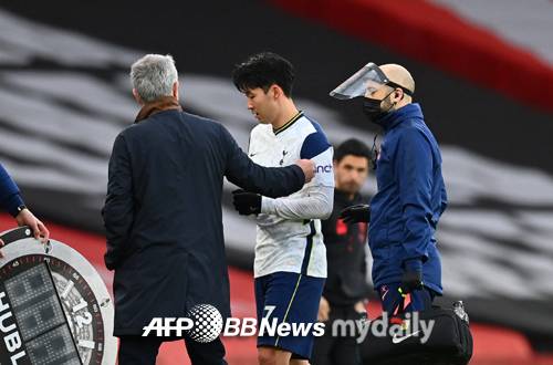 무리뉴 감독은 18일(한국시간) 영국 풋볼런던 등을 통해 손흥민의 부상에 대한 생각을 전했다. 손흥민은 지난 15일 열린 아스날과의 2020-21시즌 프리미어리그 28라운드에서 선발 출전했지만 허벅지 통증을 호소하며 전반 19분 교체됐다.
