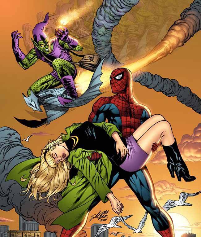 그러나 가장 심한 것은 바로 피터의 여자친구인 그웬 스테이시를 죽인 일이었죠. 그는 그웬을 납치해서 다리 위에서 던져버렸고, 스파이더맨이 급히 거미줄로 붙잡을 수는 있었으나 그웬을 살리진 못했습니다. 슬픔과 분노로 이성을 잃은 스파이더맨은 그린 고블린의 공격을 역이용해서 그를 죽였습니다. 그웬의 비극은 스파이더맨에게 커다란 트라우마로 남아 지금도 괴롭히고 있습니다.