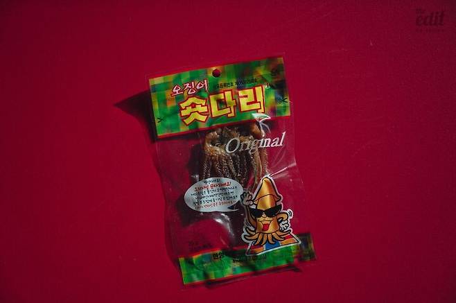 “인생 과자가 뭐예요?” 에디터B에게 이 질문을 들은 그날 밤, 집 앞 편의점에 들렀다. 나한테 그런 게 있었던가? 이 세상에 존재하는 모든 맛과 브랜드를 품은 요즘 과자들 앞에서 한껏 쪼그라들어 결국 그날 빈 걸음으로 집에 돌아왔다. 아무리 생각해도 나에겐 ‘오징어 숏다리’가 최고다. 그건 과자가 아니잖아? 이렇게 반문한다고 해도 딱히 항의하고 싶은 생각은 없다. 입이 심심해서 들린 편의점 내 손에 들린 검은 비닐 봉다리 속엔 언제나 숏다리가 껴 있었다. 검게 짜부라든 10개(먹기 전 개수를 세 보는데 항상 정확하다)의 다리를 손으로 하나씩 뜯어 먹는다. 정말 위생적인 환경에서 말리긴 한 건지, 근데 왜 이렇게까지 냄새가 나는 건지, 수상한 단맛의 정체가 무엇인지는 중요치 않다. 양 턱이 뻐근해질 때까지 질겅질겅 씹고 나면 기분이 한결 나아진다. 냄새나고 못생겼다고 무시하지 말자, 고작 20g에 1,900원이나 하는 고오급 스낵이니까. 아, 내가 숏다리에서 제일 좋아하는 부분은 몸통과 다리 사이를 연결하는 부분이다. 제일 짜고 달고 꼬릿하거든.