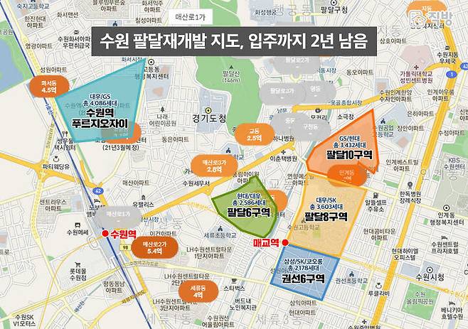 수원은 대단지가 밀집해있다. 과거부터 공장과 주거지가 함께 존재한 직주근접지역이라는 특징도 있다. 수원에는 주공아파트가 꽤 많았으며, 지금도 많은데, 바로 이런 것을 잘 설명한다. 원래부터 수원이 대도시였다는 사실을 잊어선 안된다. 여기에, 서울과의 접근성이 타 지역대비 좋아 서울통근을 원하는 사람들이 과거부터 선호했었기 때문에, 토지만 생기면 개발유인이 충분히 존재했다는 사실도 중요 포인트다. 아직도 공장들이 남아있어 향후 변화의 가능성은 언제나 존재한다.
