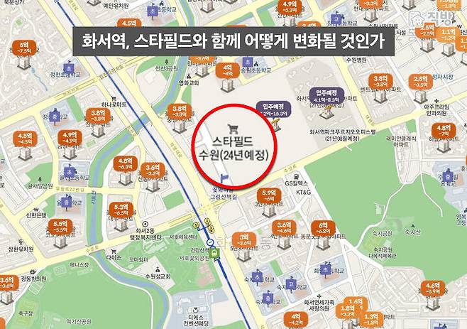 화서역 북서편 버들마을/꽃뫼마을은 2001~2002년 조성되었는데, 전용84㎡ 매매가 5.5억원(1,500만원/PY)에서 약간의 차이를 보인다. 화서역 인근 지역들은 초중고가 모두 아파트 근처에 배치되어있는 초품아/중품아/고품아라는 특징을 보인다.