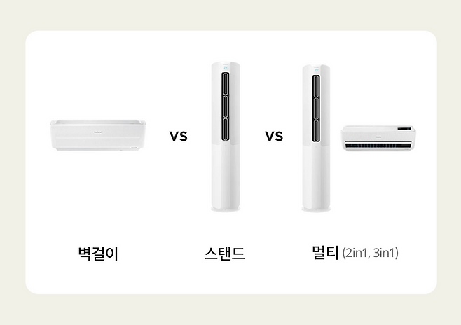 (당장은 벽걸이가 필요 없다고 해도 다음에 큰 집으로 이사갈 때를 대비해서 미리 멀티로 구매해서 보관해두기도 한답니다. 에어컨은 한 번 사면 10년 쓰는 가전이니 길게 보고 구매하는 게 좋아요 🤗)