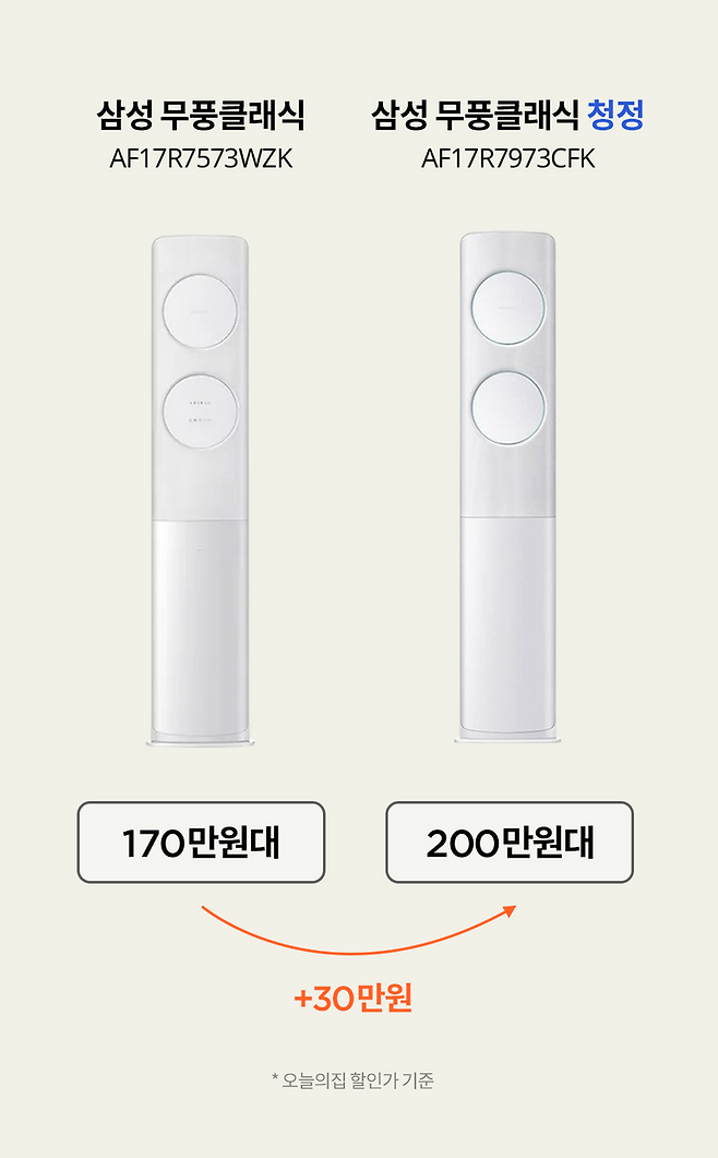 만약 거실에 이미 공기청정기가 있다면 굳이 30만원 더 쓸 필요 없이 공기청정기능이 없는 모델을 사면 되겠죠.