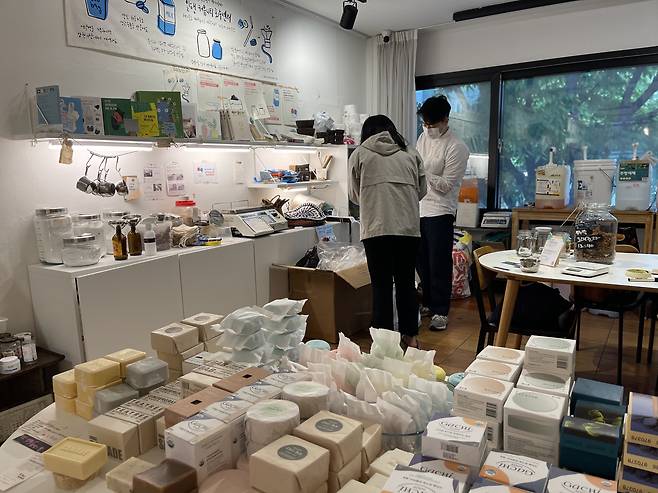 개업한 지 얼마 되지 않았지만, 하루 평균 100명에서 150명의 손님이 방문하는 '핫플레이스'인 이곳은 말 그대로 '제로 웨이스트'를 지향하는 상점이다.