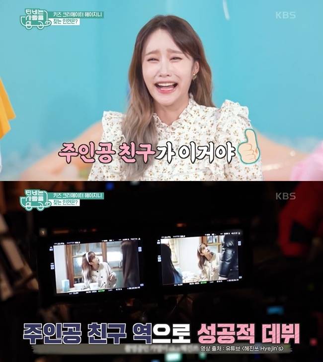 5월 5일 방송된 KBS 2TV 예능프로그램 'TV는 사랑을 싣고'에는 헤이지니가 어린이날 특집 주인공으로 출연했다. 이날 과거 연기자를 꿈꿨다는 헤이지니는 함께 연기 수업을 받았던 친구를 찾아나섰다. 어린이날 특집인 만큼 MC 김원희, 현주엽과 동심으로 돌아간 상황극을 펼치기도 했다.