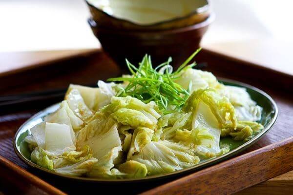 배추 하나만 있으면 만들 수 있는 배추찜은 원래 중국요리이지만 우리 입맛에도 잘 맞아 많은 사람들이 즐겨 만들어 먹는 배추 요리 중 하나다. 배추의 겉 잎을 떼어나고 노란 속 배추로 1/4통을 준비해 찜통에 넣어 센 불에서 5분, 중불에서 5분 찐 후 살짝 뜸 들여 준비하고, 간장 2 큰 술, 설탕 1 큰 술, 굴 소스 1 큰 술, 고추기름 2 큰 술, 식초 1.2컵, 물 1/3컵, 대파 1/4대, 풋고추 1개, 홍고추 1개, 다진 마늘 1.5 큰 술, 다진 생강 1/2 큰 술을 넣어 중국식 소스를 만든 후 배추 위에 끼얹어 주기만 하면 완성된다.