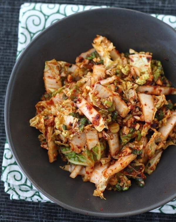 아삭아삭 씹히는 식감이 좋은 배추 생채도 겨울철 배추 요리로 인기가 좋다. 배추 잎 3장을 깨끗이 씻어 잘게 0.3cm 폭으로 썰어 준비하고, 양조간장 1 작은 술, 멸치 액젓 2 작은 술, 고춧가루 1 작은 술, 설탕 1/2 작은 술, 참기름 1/2큰술, 통깨 1/2 작은 술을 섞어 만든 양념을 부어 고루 버무려 주기만 하면 된다. 나물처럼 데칠 필요가 없어 바쁜 시간에도 뚝딱 만들 수 있는 초간단 배추 요리다.
