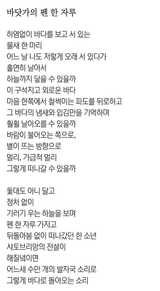 나는 지금 프랑스 북서부의 생말로라는 한적한 바닷가 호텔에 머무르고 있습니다. 강 같은 바다가 그 벽을 물길로 부딪고 갑니다. 문득 대상 없는 누군가를 향해서라도 손편지를 써보고 싶다는 생각이 듭니다. 오늘 저의 ‘시(詩)로 가는 그림 여행’은 그래서 서간 투로 열어볼까 합니다. 전자메일은 조석으로 쏟아져 나오지만 정작 따뜻한 손편지를 쓰거나 받아본 기억은 아득하기 때문입니다. 오늘은 생말로의 정신적 지주, 프랑수아 르네드 샤토브리앙에 대해 쓸까 합니다. 생말로에 오기 전 나는 샤토브리앙에 대해 도대체 아는 바가 없었습니다. 그 이름을 처음 들었을 때는 프랑스의 어느 고성(古城)이거나 심지어 와인 이름쯤 되는 줄 알았을 정도였으니까요. 실제로 와인 이름은 아니지만 샤토브리앙 스테이크라는 게 있긴 하다는군요. 그러다가 작가 샤토브리앙을 알게 된 것은 그 이름 앞에 늘 ‘위대한’이라는 글자가 붙는 빅토르 위고라는 창(窓)을 통해서, 그것도 아주 우연히 알게 됐습니다. 어린 시절 위고는 문학 소년의 열병을 치러 내면서 글쓰기에 대한 각오를 일기장에 이렇게 남겼다고 합니다.