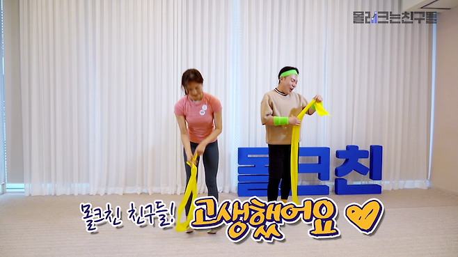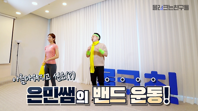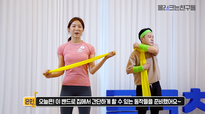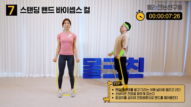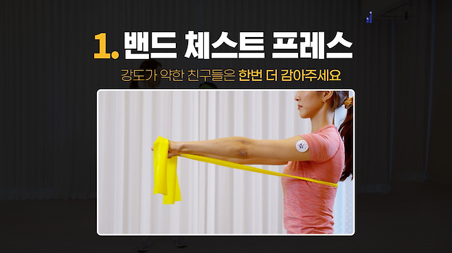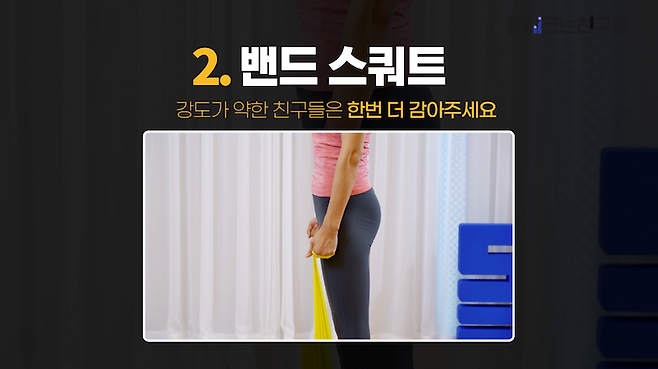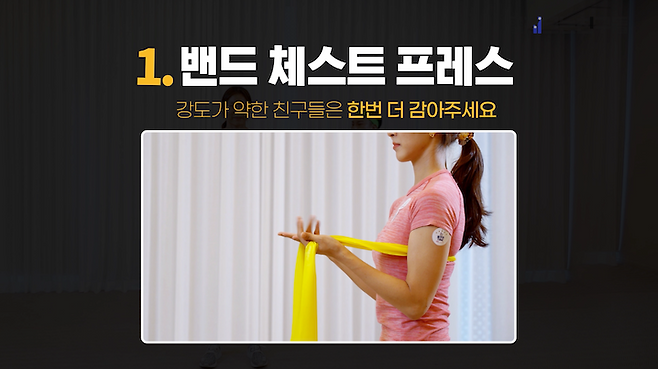 밴드를 2번 꼬아서(각자 근력 수준에 맞게 한 번 꼬아도 됩니다.)