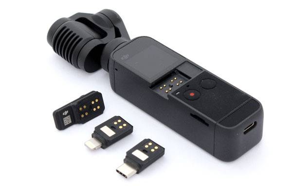 전작과 마찬가지로 녹화(REC) 버튼과 메뉴 버튼 위에 커넥터가 있어 짐벌 조종 스틱이나 스마트폰 어댑터를 끼울 수 있다. 스마트폰 어댑터는 아이폰용 라이트닝(Lightning) 커넥터와 안드로이드용 USB-C 커넥터가 제공된다.